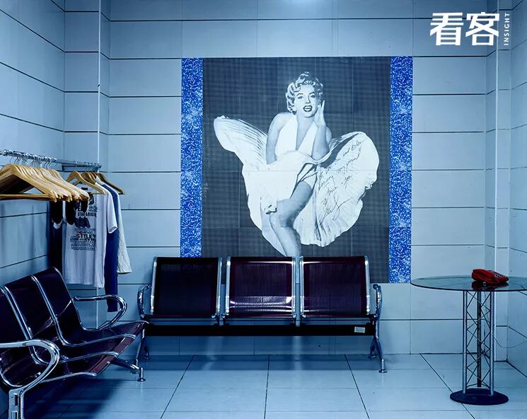 某桑拿中心的更衣间内,挂着性感女星玛丽莲·梦露的照片