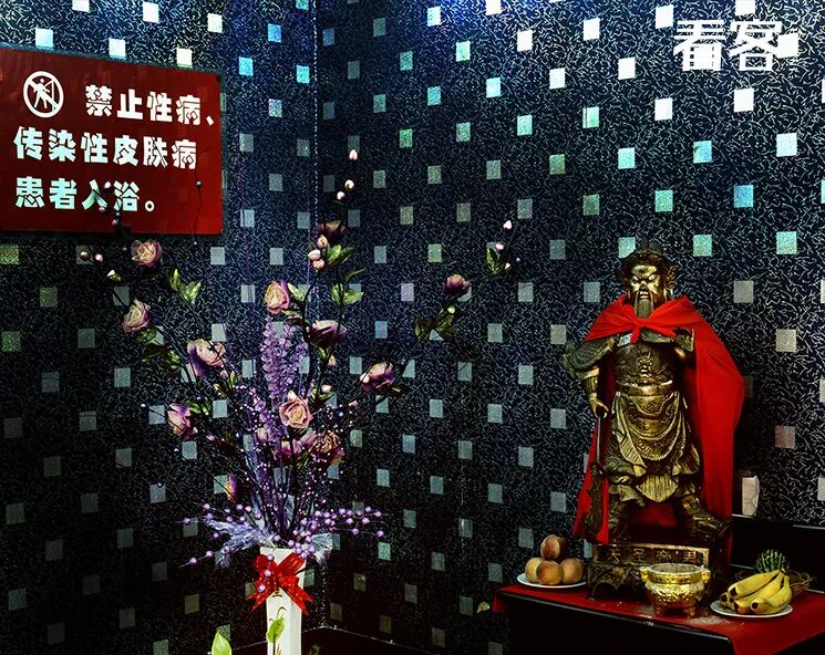 一家洗浴中心入口供奉的关帝神像