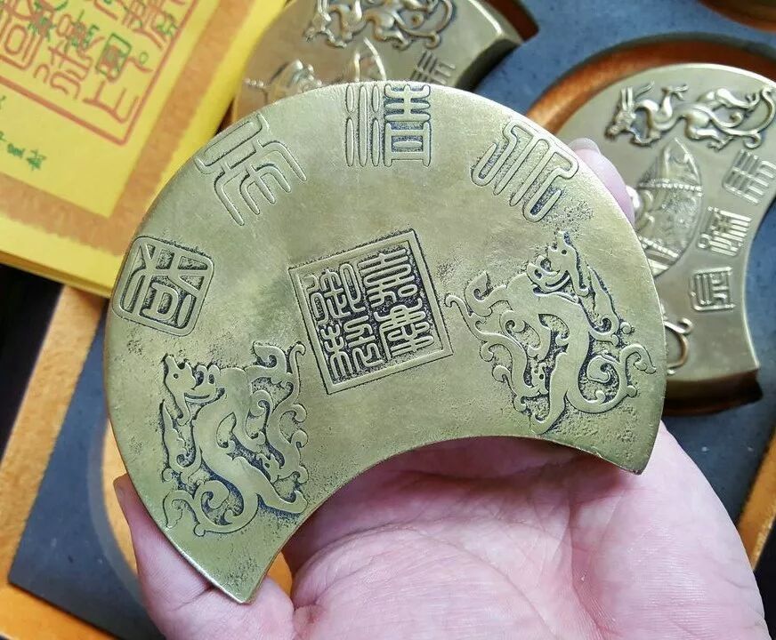 左青龙右白虎,尽显龙兴之地的东北特色。怕你不认识这是啥,还很贴心地用经典繁方篆打了"马蹄金"三个字上去。大图感受一下: