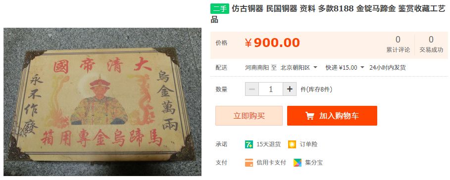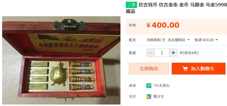 不管咋说,这一箱马蹄金1800还是有点贵了。找了半天我在淘宝找到一个只要900的,不过是乌金……