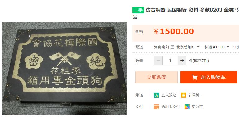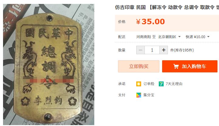 虽然以上提到的"梅花党人"在淘宝都有相关"文物",但出镜率最多的是李烈钧和李桂花。在三个案例中,梅花协会的假文物路子是最野的,野到没朋友。