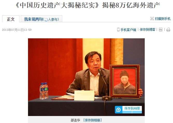 此书作者就是上文提到去湖南寻宝的邵某,他的另一个身份是"辽宁省中美资产历史遗留问题研究会秘书长"
