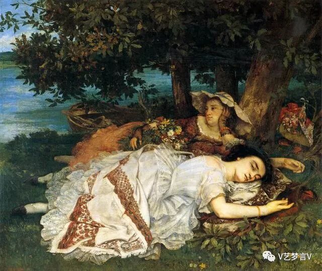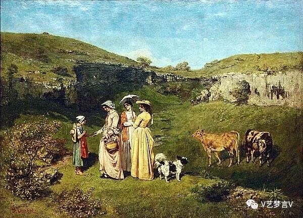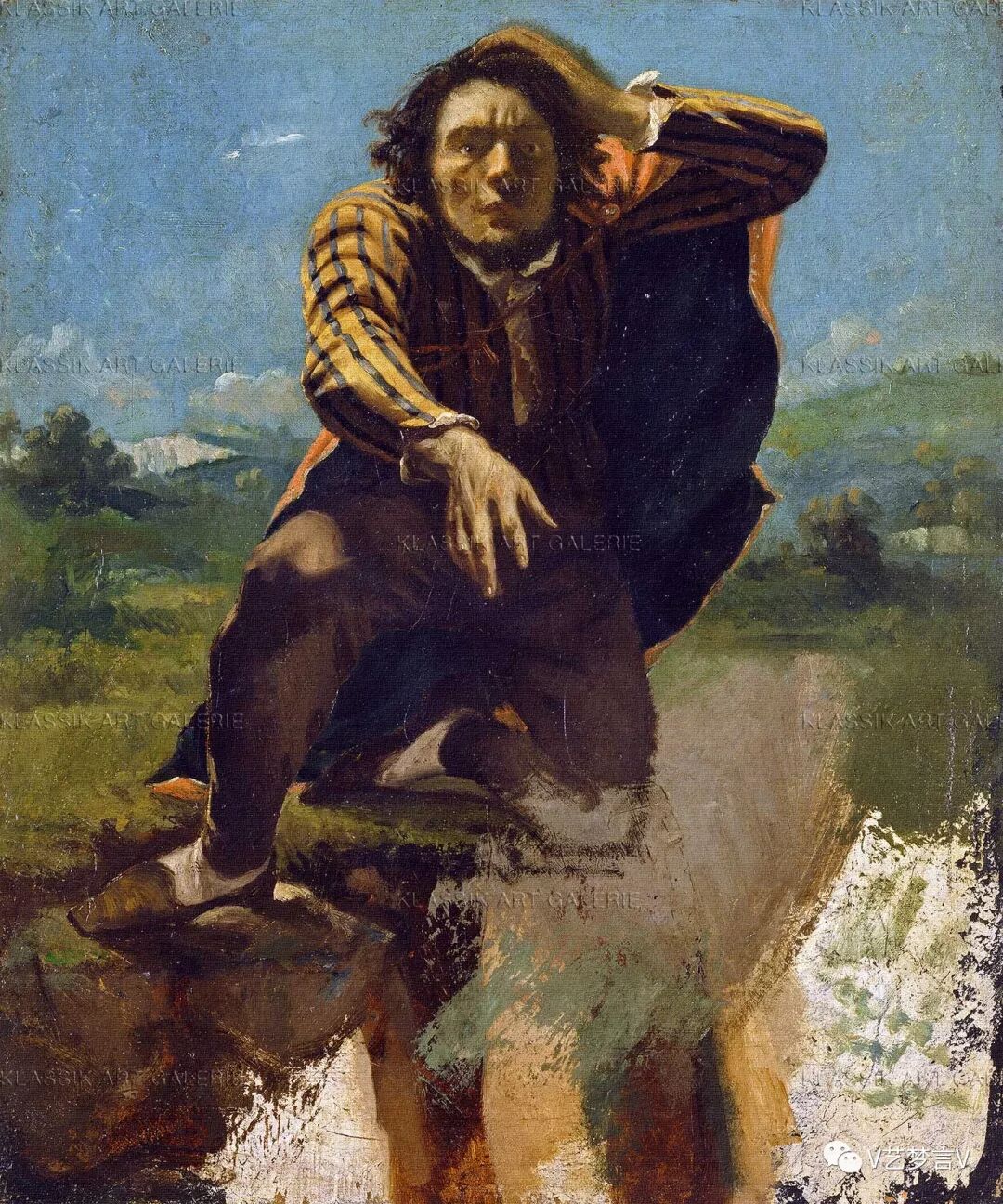在古代大师中,库尔贝最欣赏17世纪西班牙画家委拉斯贵支的技巧,专心临摹和收藏过不少他的作品。在古典艺术的系统中,委拉斯贵支的艺术带有极强的生活气息,其实那不过是没有将生活用画笔美化的真实样子罢了,不过,委拉斯贵支到因此被称为"真理画家"。什么是真理?什么又是库尔贝理解的真理?也许看看库尔贝行为可以认识个大概:他将自己深潜在人群中,用一种平实的视角记录周围的生活。这些生活和人一如既往地生活、工作,乞讨或者流浪;但是由于以往基于视觉权力下的观看和记录,他们从来没有进入被描摹的视域。瞧见没?这就是库尔贝不同于古典主义和浪漫主义者的根本所在。