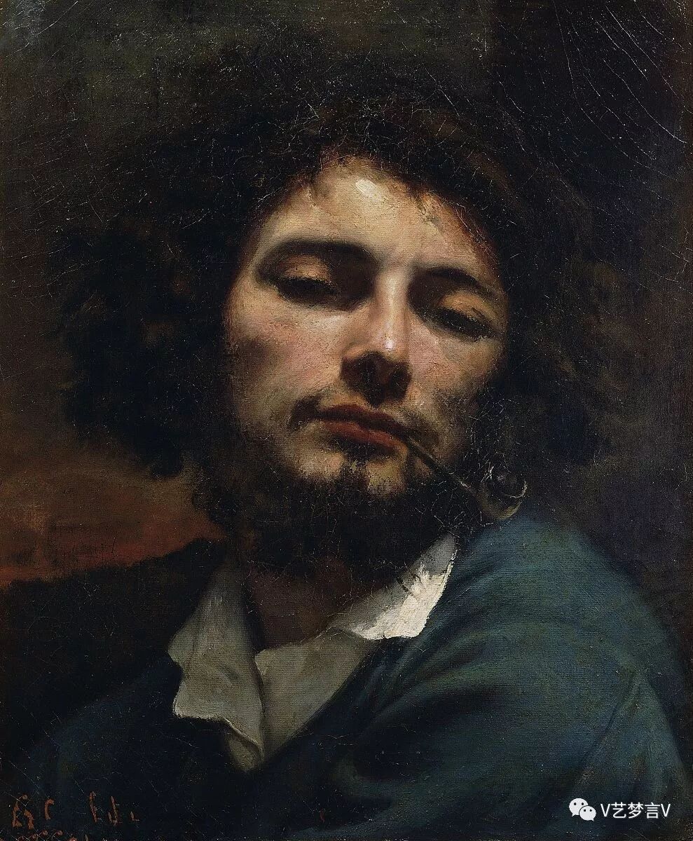 ▲叼烟斗的自画像,画布 油彩,约1849年