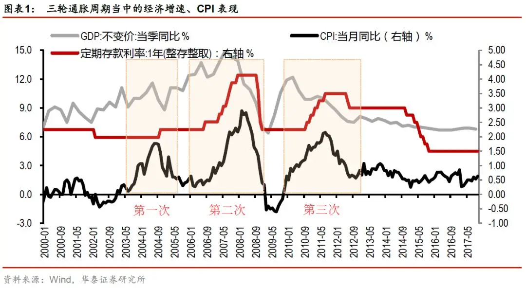 2002年之后,中国一共出现了三次相对完整的通胀周期[1]。根据华泰宏观的总结,三次周期分别是: